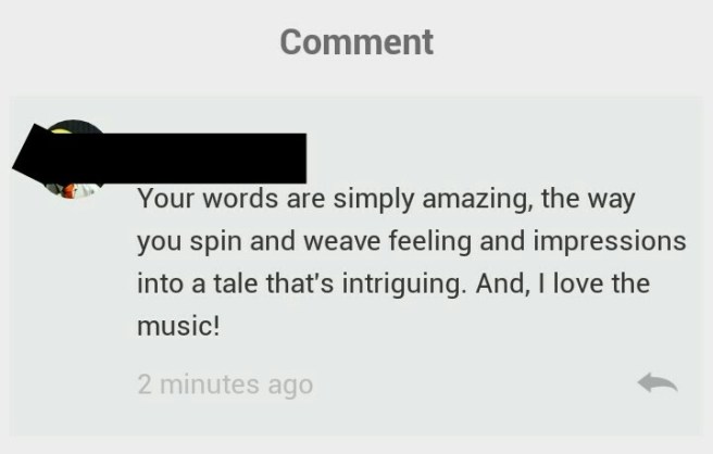 I posted this little thing minutes ago on Wattpad. The comment touched me and made me happy