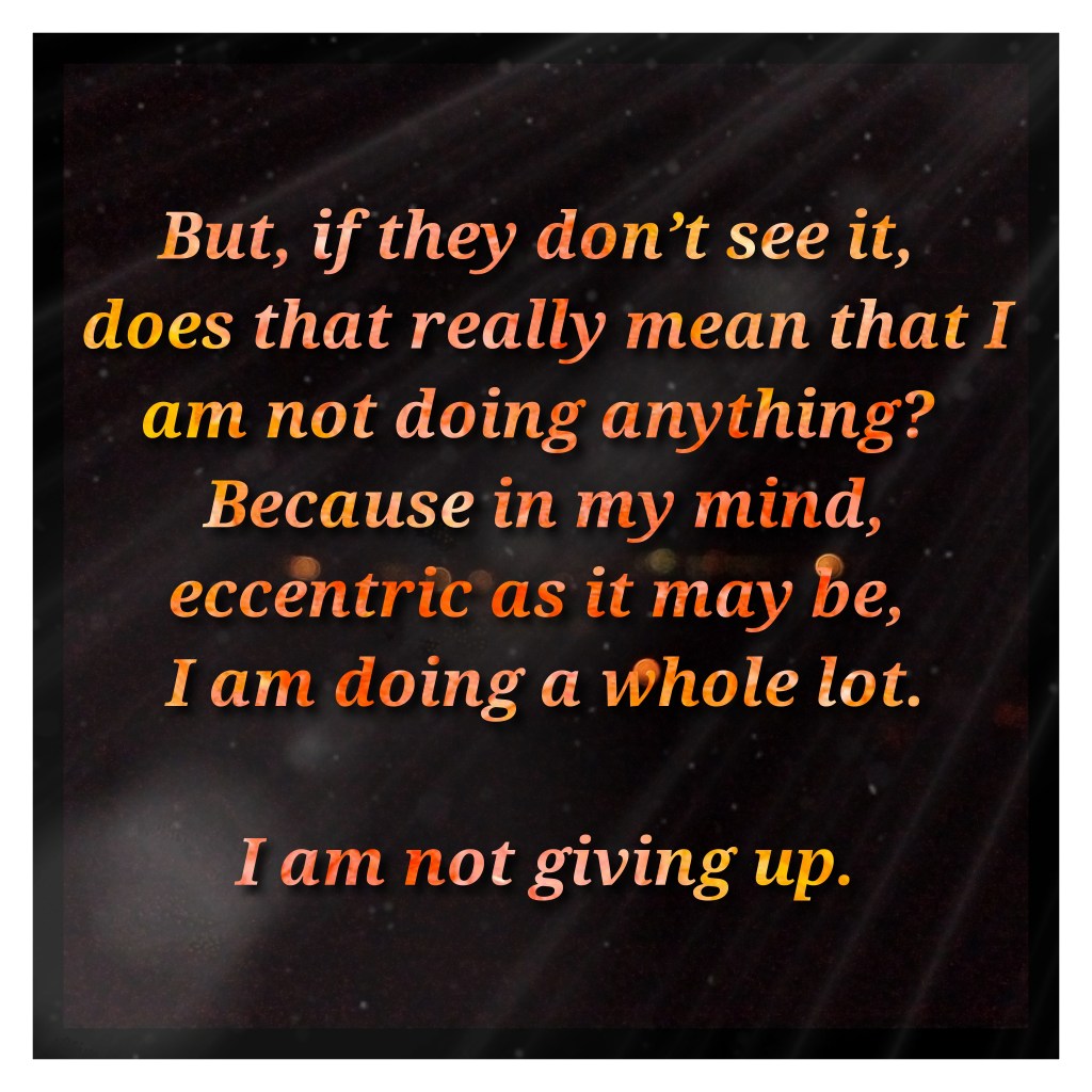 I know some people who tried to put an end to their lives. And I tried too. I did not want to be a part of my life anymore. I was not feeling myself. And I was feeling too much. But, I am still here. I am fighting. Every day. And most days it is an invisible struggle; voices that only I can hear.