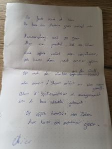 Olivier gave me words and a big hug, and a tear in the eyes too. A poem, handwritten in Luxembourgish, full of rhythm and memory. Twenty years since I became “mamm,” he wrote. Lines about ukuleles on the couch and dishwashers that do not empty themselves. About voices and time and the invisible threads that hold a home together. It was funny, moving, and honest. The kind of gift that does not fade.