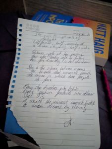 There was a moment when she wanted to look away, the intensity too much, as though being seen so deeply left her exposed. He hovered above her with an astounded smile, and with quiet command he moved her arm from her face. Look at me, he said, his voice so certain it broke her open. The force of it scattered her, a million pieces of lust and desire, shattering under the weight of being seen.