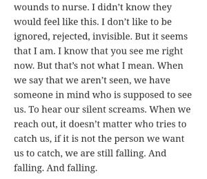 It’s quite painful to read all of these words again. They were at the beginning of a dark and depressive phase in my life and I am not completely out of the woods yet. I have been fighting and struggling for three years.