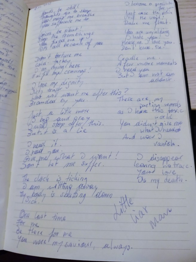 Despite it all, I was a rebel. I started to meet with the wrong people, fell in love with the wrong people and saw them destroying themselves with drugs. I never did anything. Was I a coward or too headstrong? I don’t know. I simply didn’t like to see them lose control and I didn’t want to see it happen to myself. Drugs were never an option for me. If it had been, I would not be here right now. I would have died with my friend. (he died of an overdose in 2012). I didn’t go home during the days anymore. I went to school and wouldn’t go back home until it was evening. I would do my chores at home and hide in my room with the music turned up. I wrote pages and pages in my diary and I also started to write poetry. It became an outled and I stopped cutting. I simply stopped. It was hard at first. To take the pen instead of the cutter. But I succeeded. I was proud of myself, but I had no one to share that feeling with. It’s the story of my life.