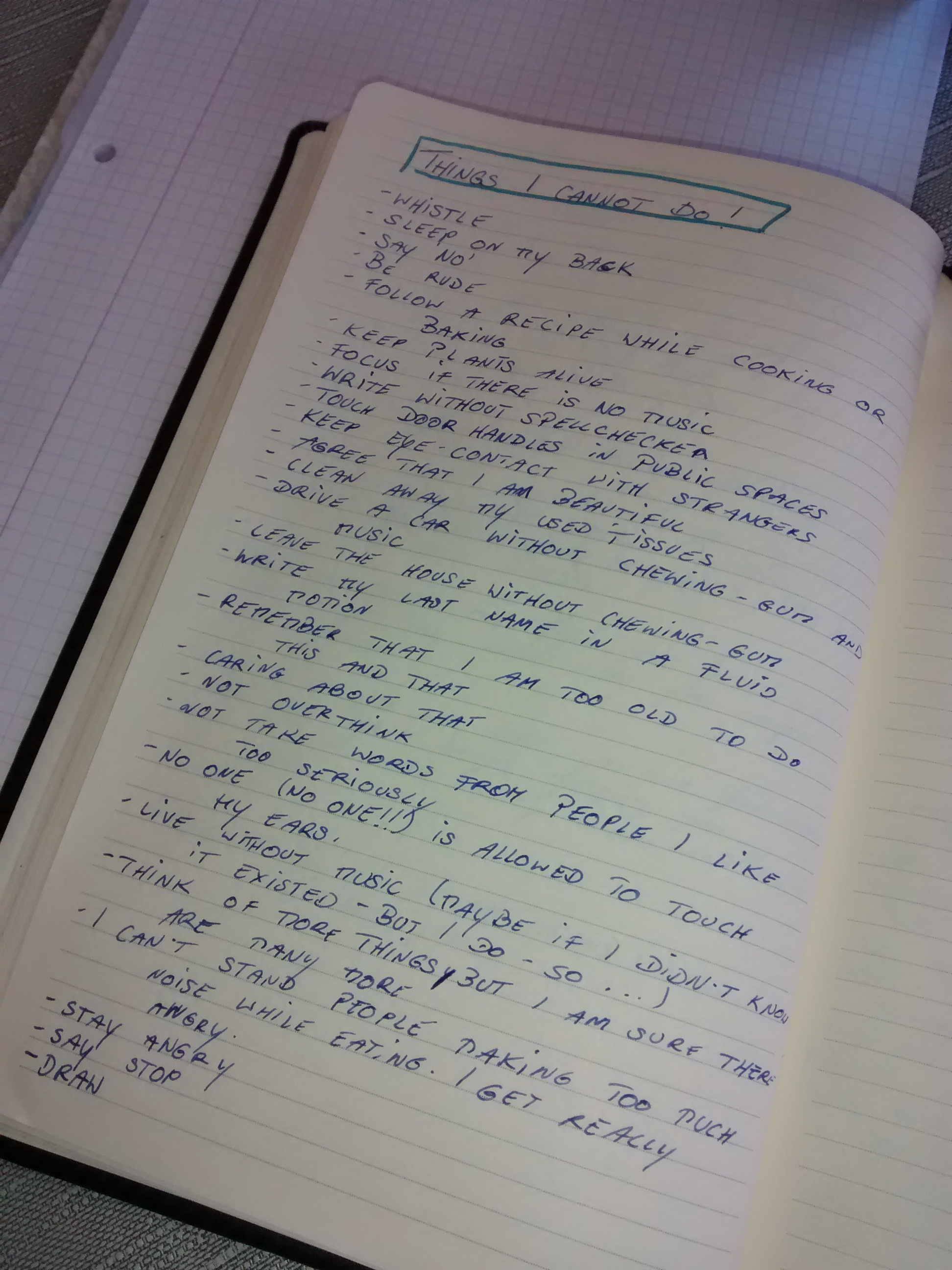 I am not taking myself too seriously here. I was sitting across my son, who was doing his homework in French and he began whistling. As you can see on this list, I can’t whistle and I began to write down things I can’t do. There are many more things I can’t do, this is just a start.